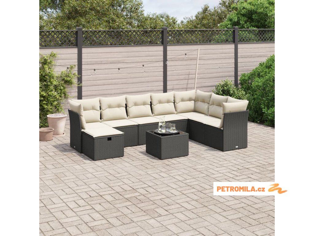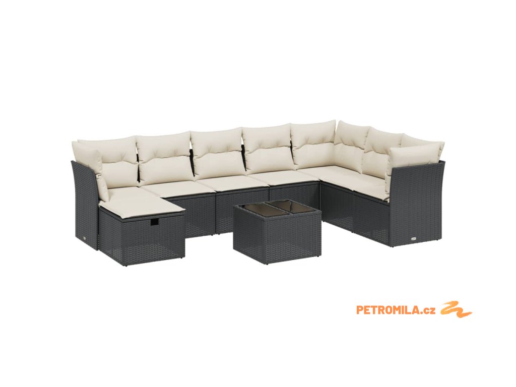 9dílná zahradní sedací souprava s poduškami černá polyratan