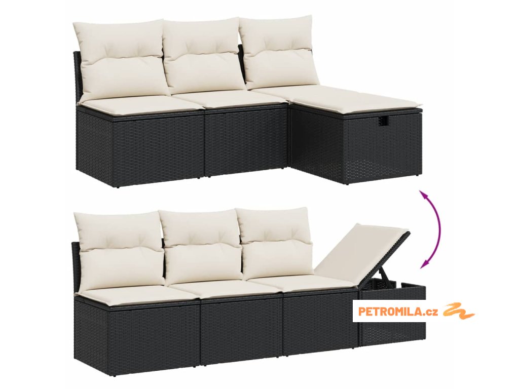 Sada zahradních pohovek s polštářem 6 pcs Černá Poly Ratan