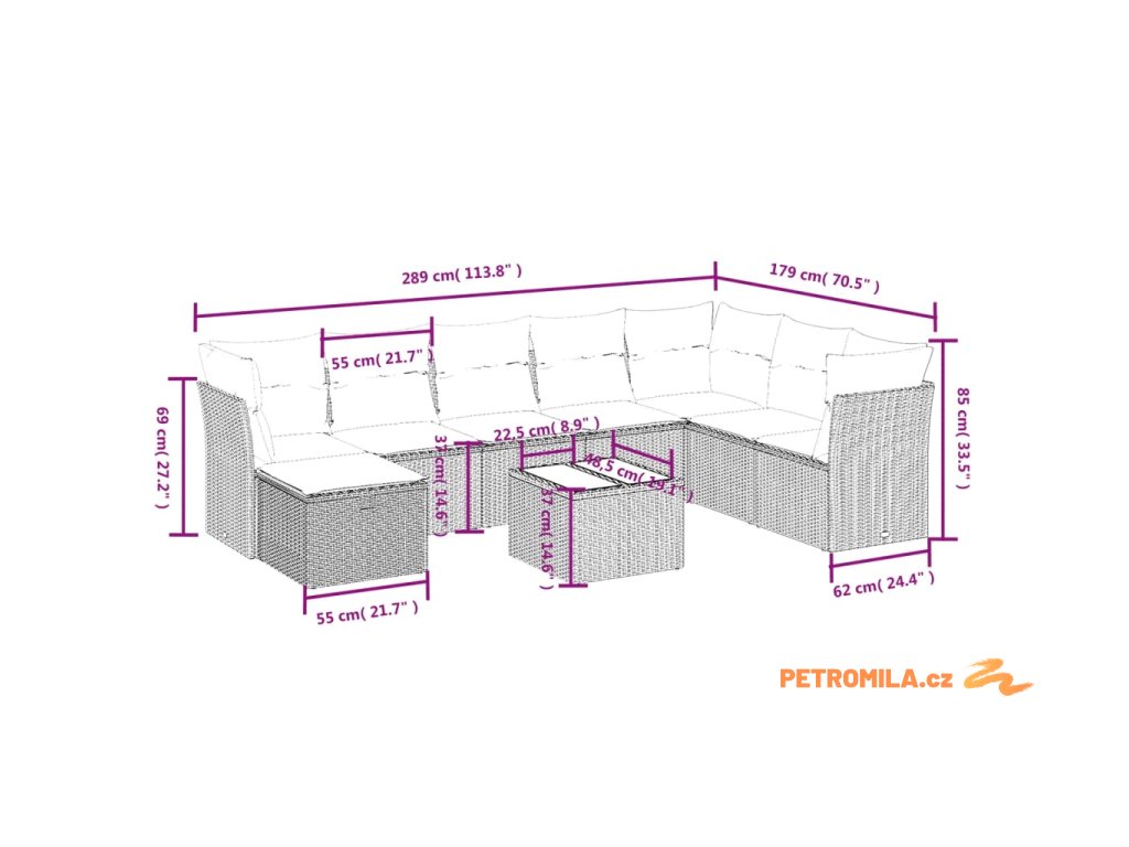 Sada zahradních pohovek s polštářem 9 pcs Béžová Poly ratan