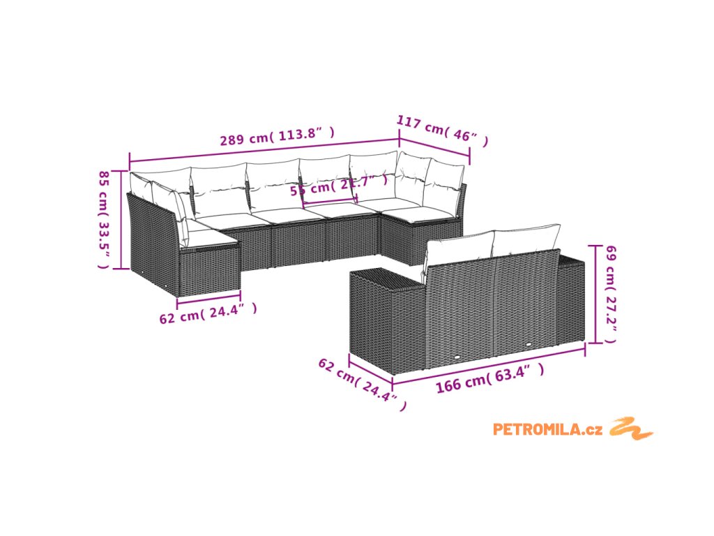 Sada zahradních pohovek s polštářem 9 pcs Béžová Poly ratan
