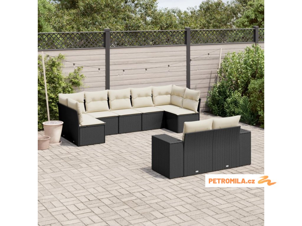 9dílná zahradní sedací souprava s poduškami černá polyratan