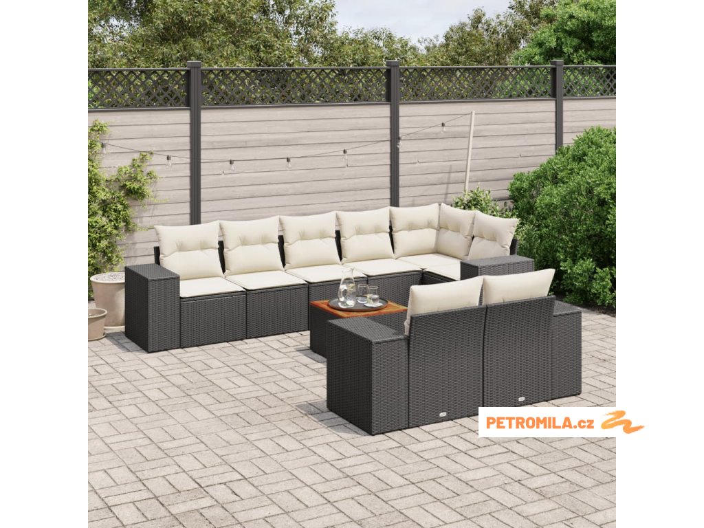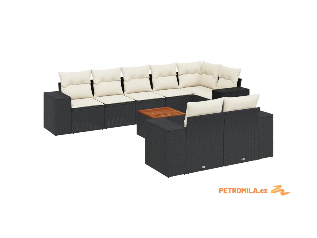 9dílná zahradní sedací souprava s poduškami černá polyratan