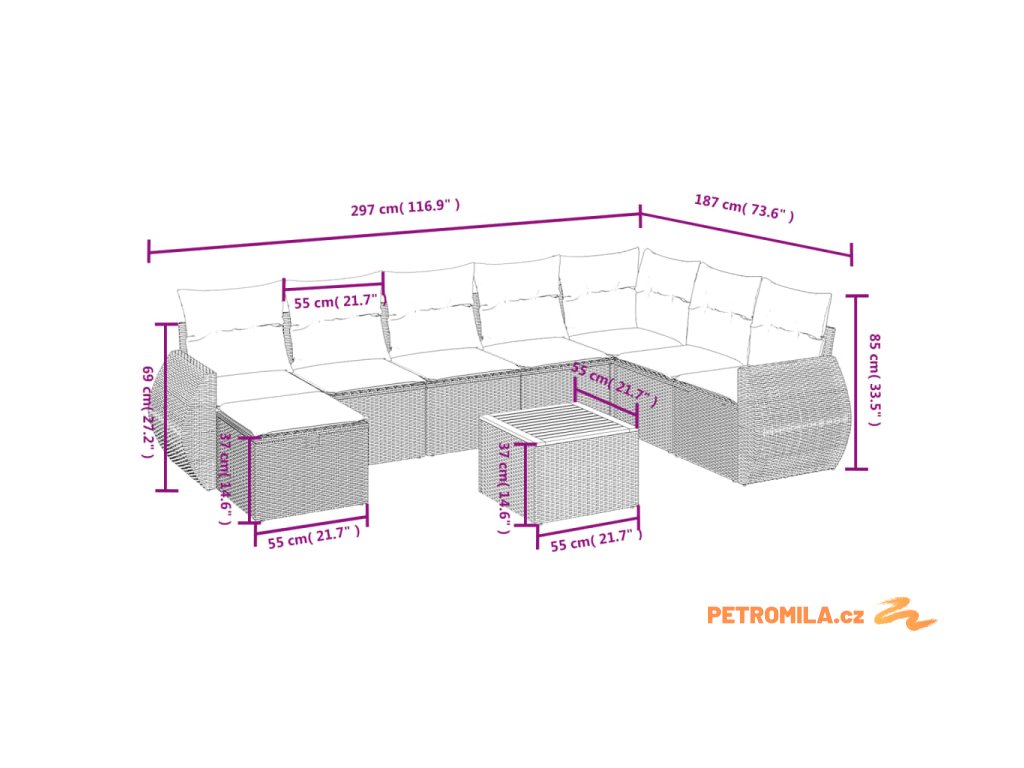 Sada zahradních pohovek s polštářem 9 pcs Béžová Poly ratan
