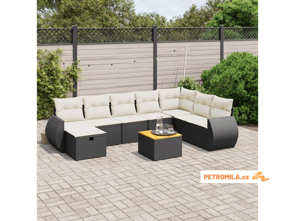 9dílná zahradní sedací souprava s poduškami černá polyratan