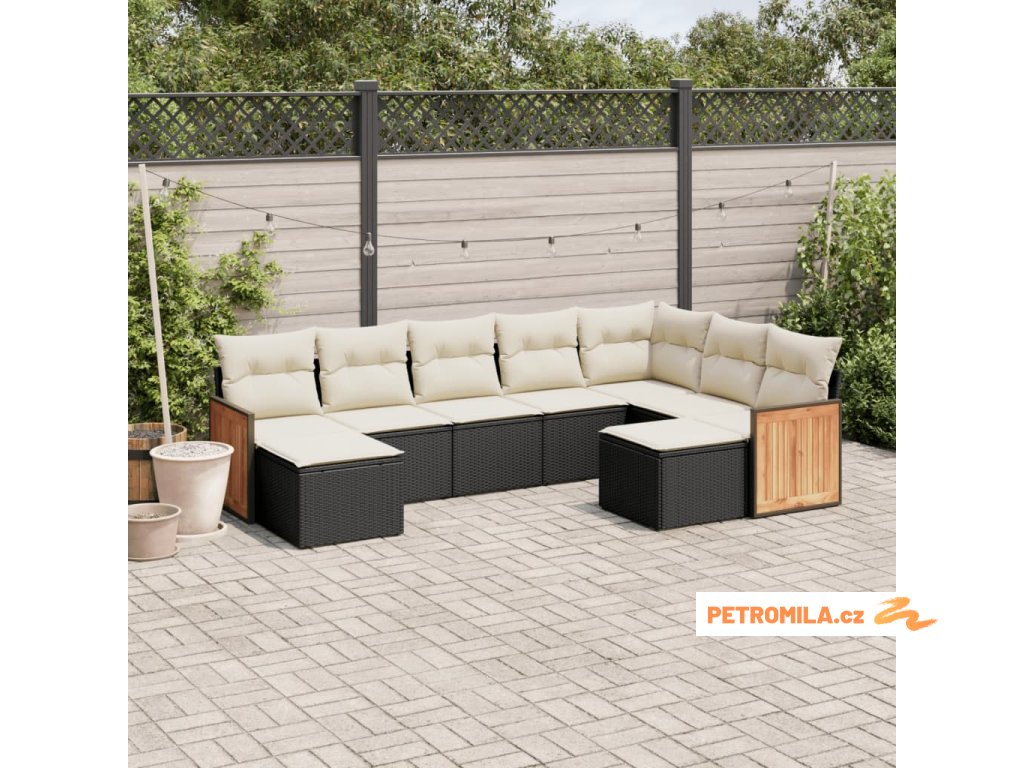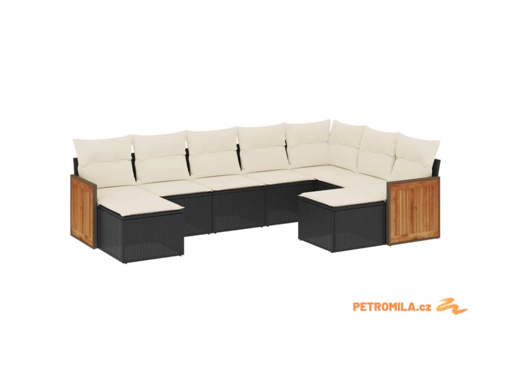 9dílná zahradní sedací souprava s poduškami černá polyratan