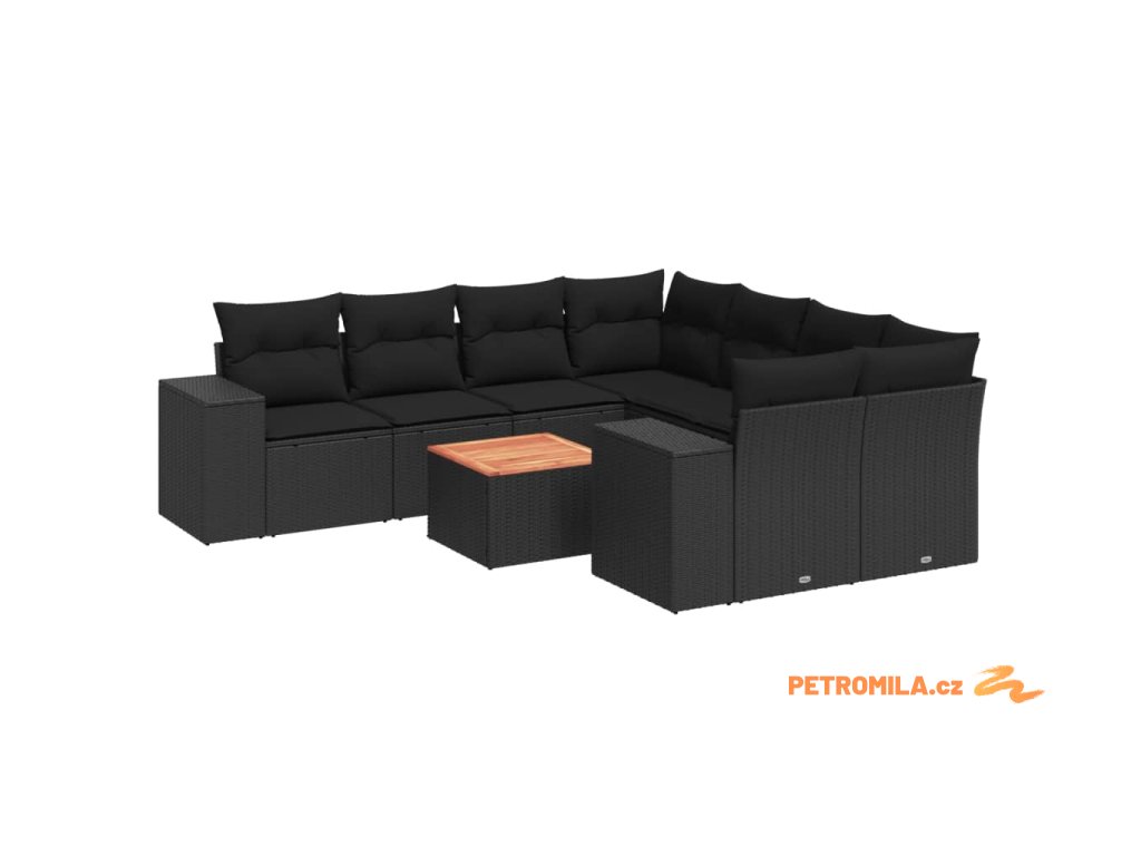 9dílná zahradní sedací souprava s poduškami černá polyratan