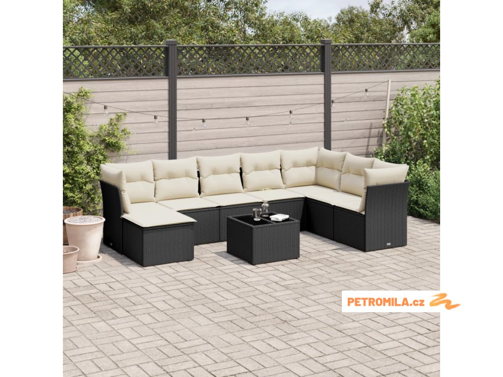 9dílná zahradní sedací souprava s poduškami černá polyratan