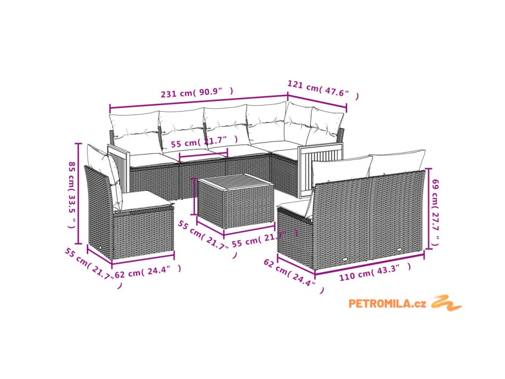 - Modulární design: Tato sada venkovního nábytku se vyznačuje modulární konstrukcí, je tedy zcela flexibilní a lze ji snadno přemisťovat, takže si můžete uspořádat venkovní nábytek dle vašich potřeb.