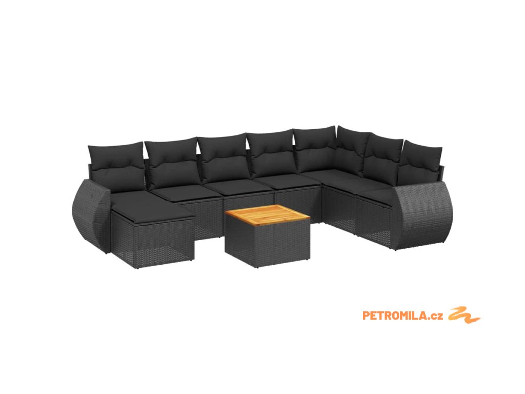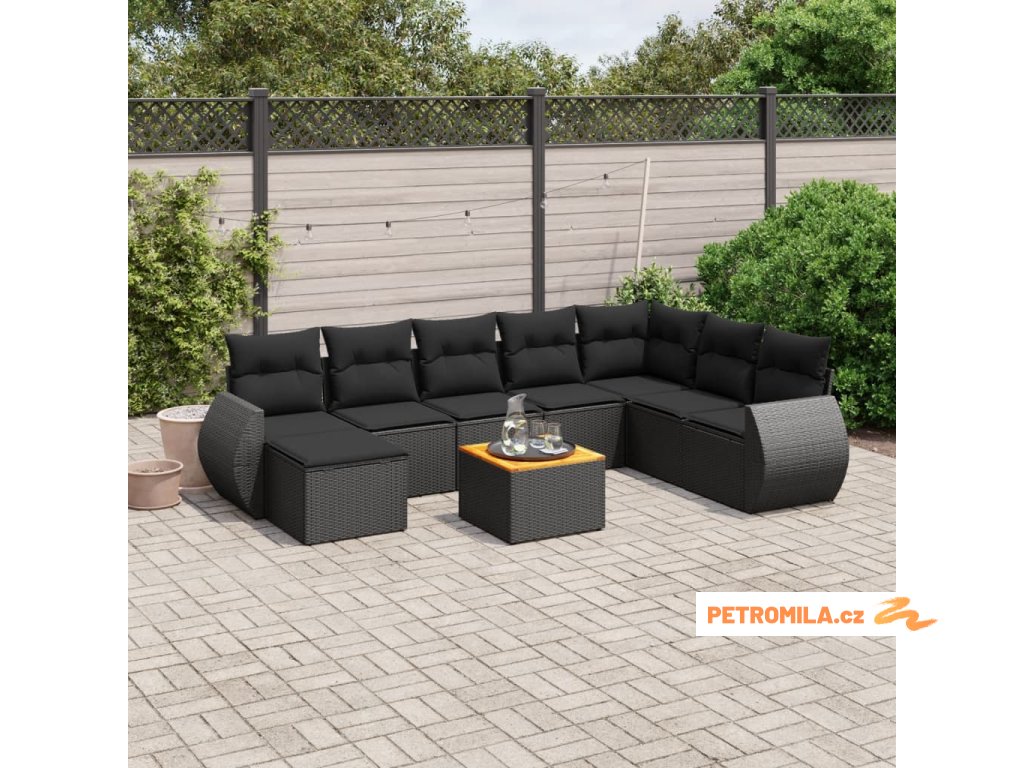 9dílná zahradní sedací souprava s poduškami černá polyratan