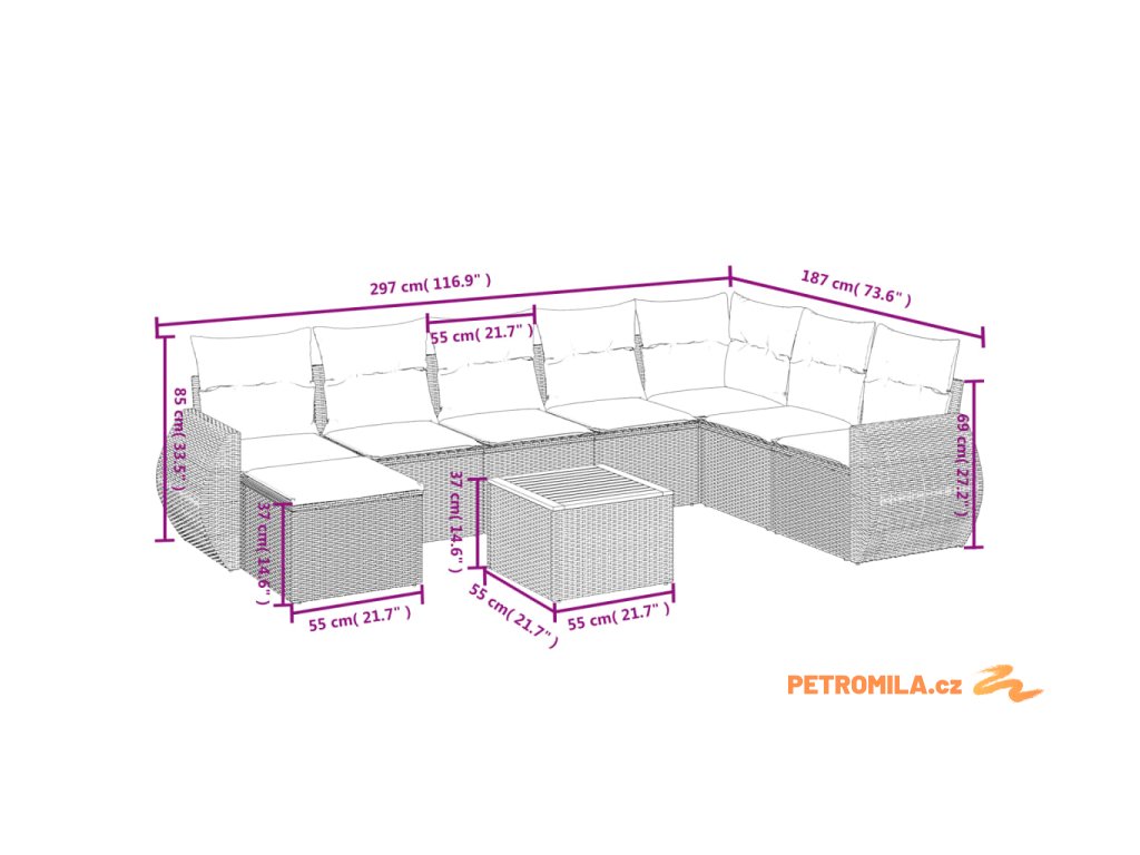 Sada zahradních pohovek s polštářem 8 pcs Béžová Poly ratan