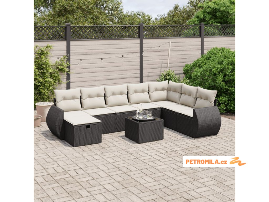 9dílná zahradní sedací souprava s poduškami černá polyratan