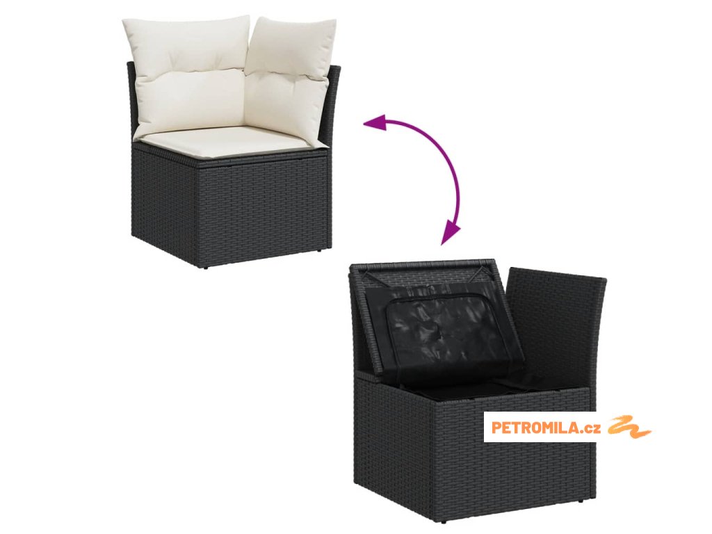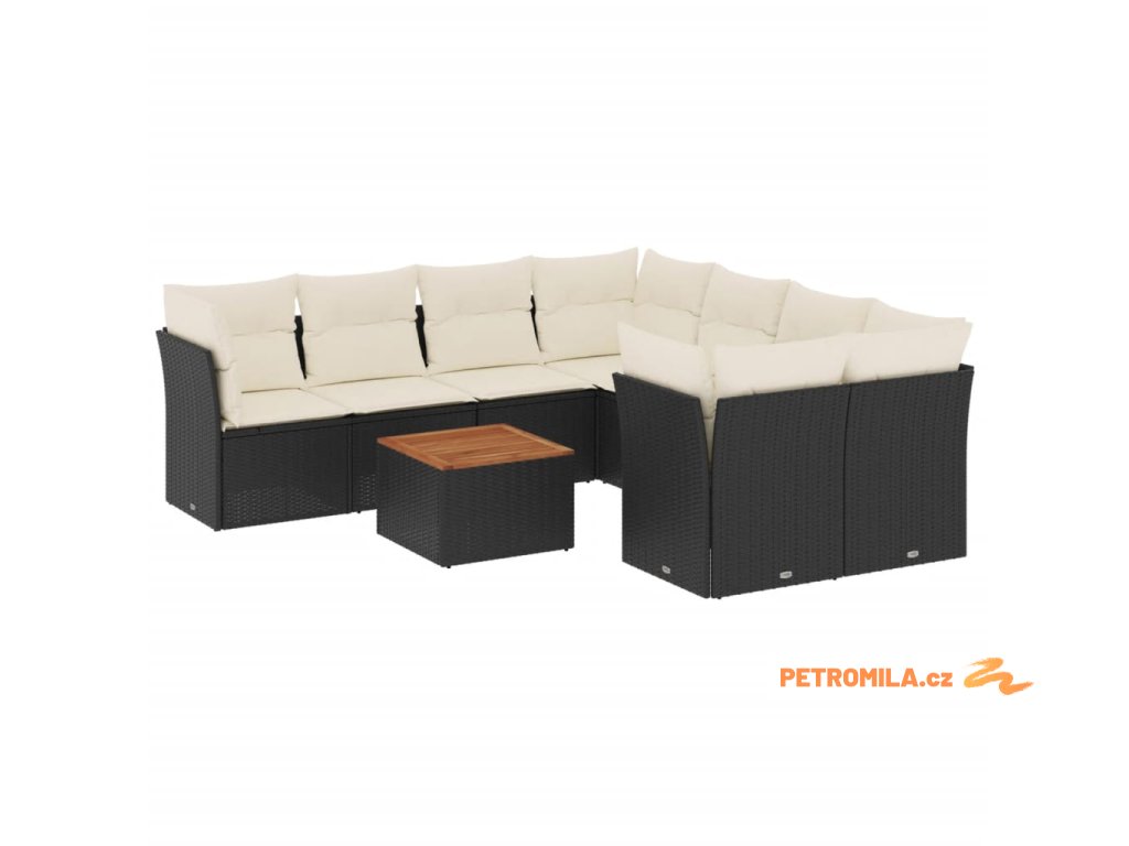9dílná zahradní sedací souprava s poduškami černá polyratan