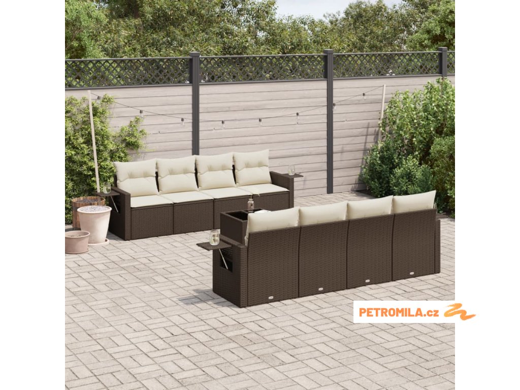 9dílná zahradní sedací souprava s poduškami hnědá polyratan
