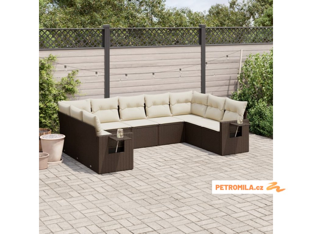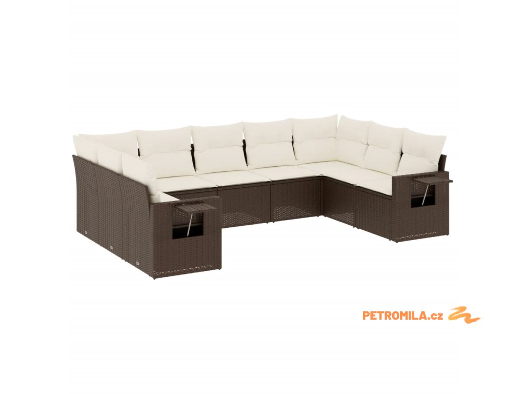 9dílná zahradní sedací souprava s poduškami hnědá polyratan