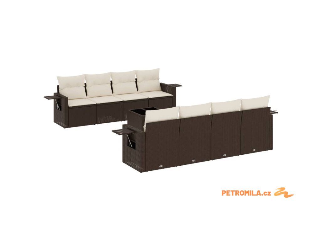 9dílná zahradní sedací souprava s poduškami hnědá polyratan