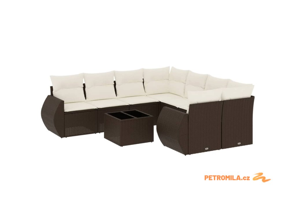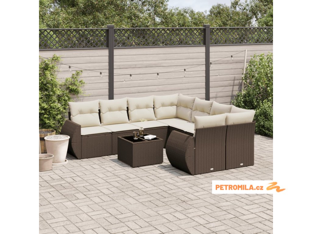9dílná zahradní sedací souprava s poduškami hnědá polyratan