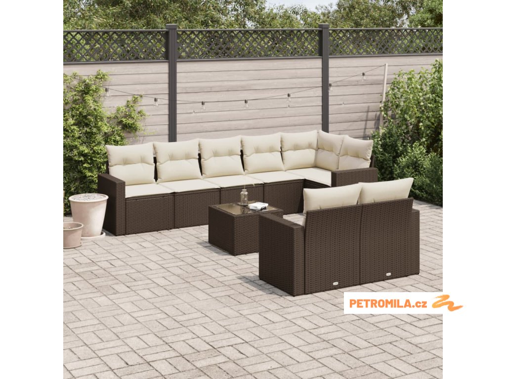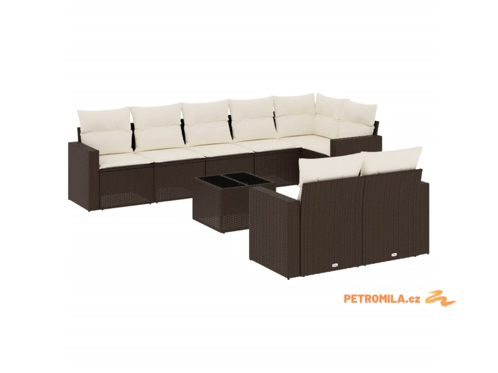 9dílná zahradní sedací souprava s poduškami hnědá polyratan