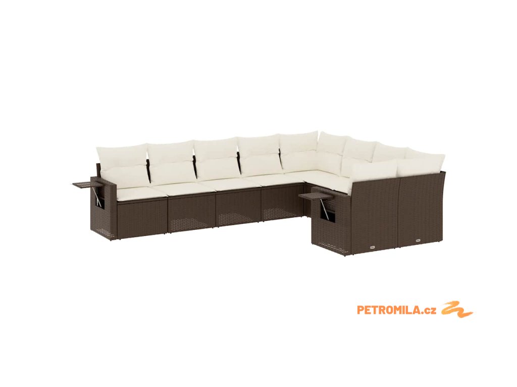 9dílná zahradní sedací souprava s poduškami hnědá polyratan