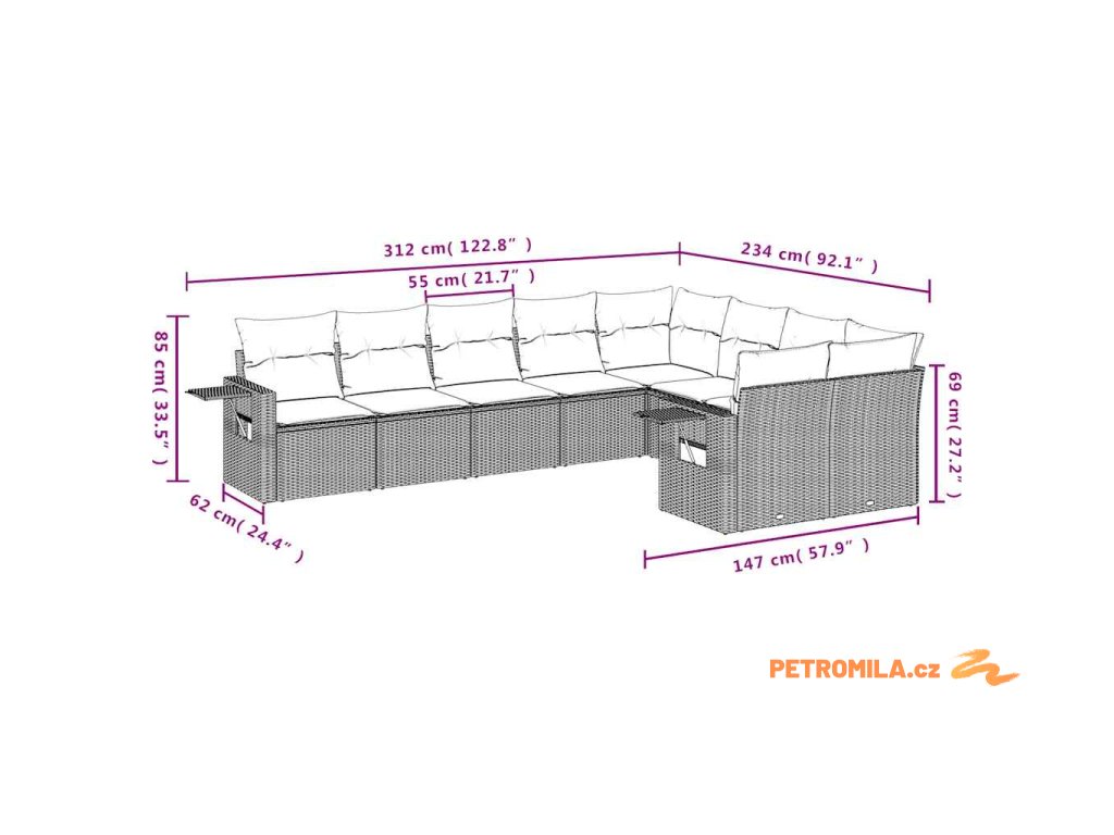 Tato zahradní sedací souprava je dokonalým doplňkem vaší zahrady, terasy nebo dvorku a poskytne vám pohodlné a příjemné místo, kde si můžete povídat s rodinou a přáteli nebo jen tak odpočívat a užívat si pobyt venku.