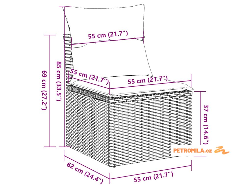 - Rozměry podušky na sedák: 55 x 55 x 3 cm (Š x H x T)