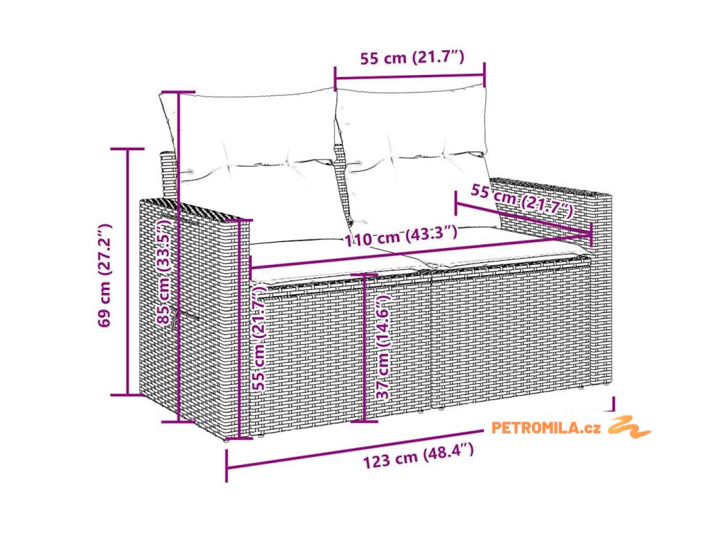 - Rozměry podušky za záda: 55 x 45 x 13 cm (D x Š x T)
