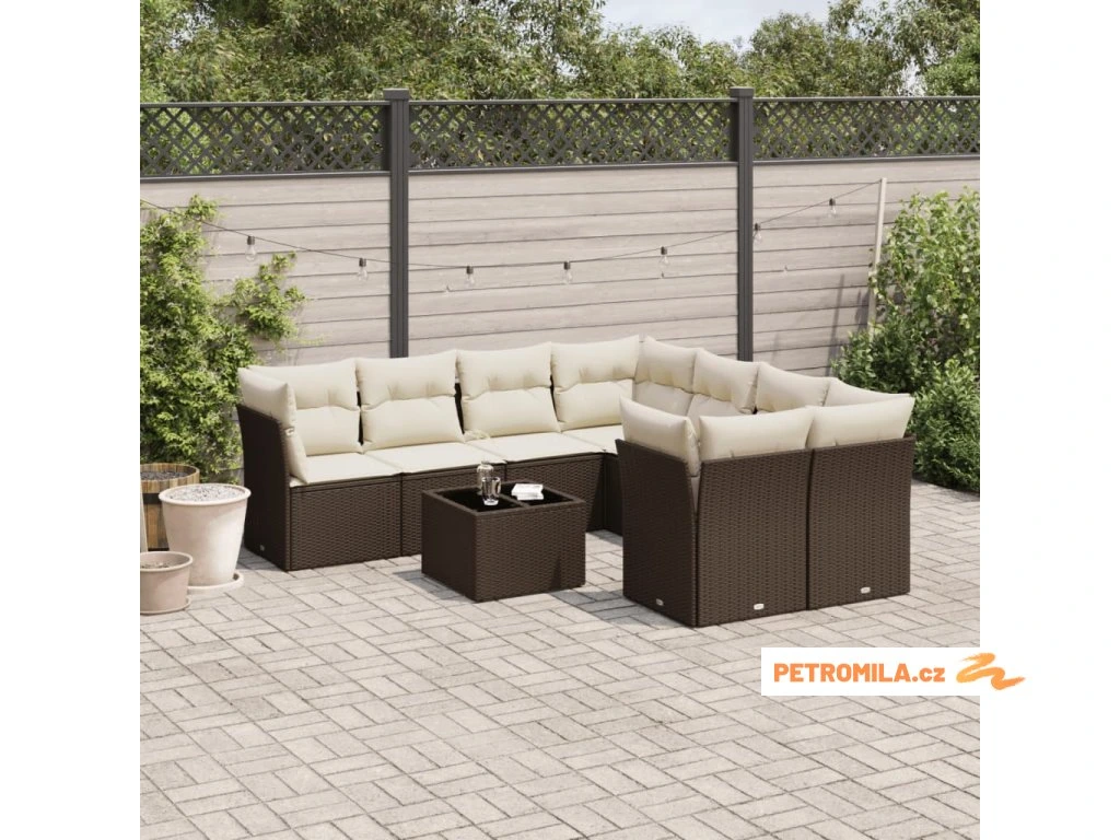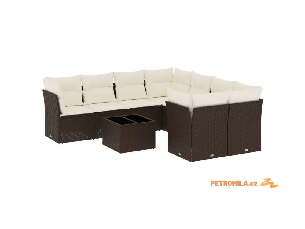 9dílná zahradní sedací souprava s poduškami hnědá polyratan