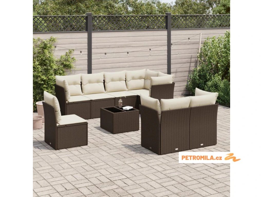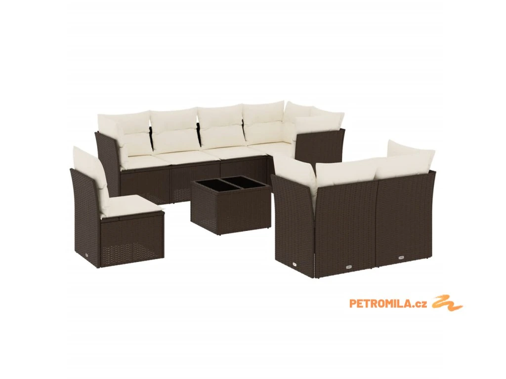 9dílná zahradní sedací souprava s poduškami hnědá polyratan