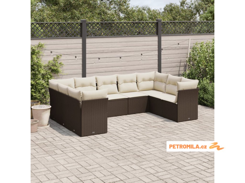 9dílná zahradní sedací souprava s poduškami hnědá polyratan