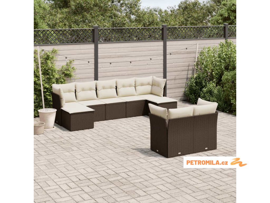 9dílná zahradní sedací souprava s poduškami hnědá polyratan