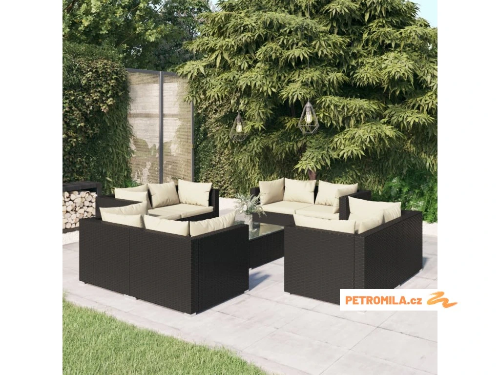 9dílná zahradní sedací souprava s poduškami polyratan černá