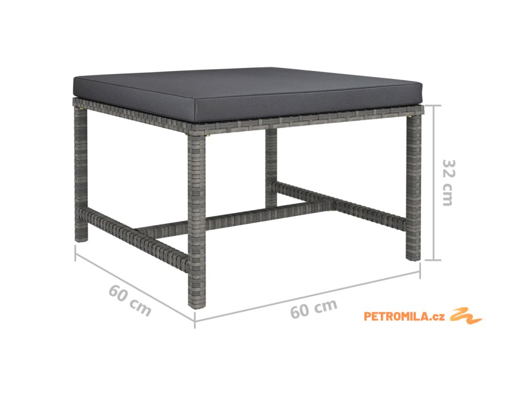 - Materiál: PE (polyethylenový) ratan, práškově lakovaná ocel