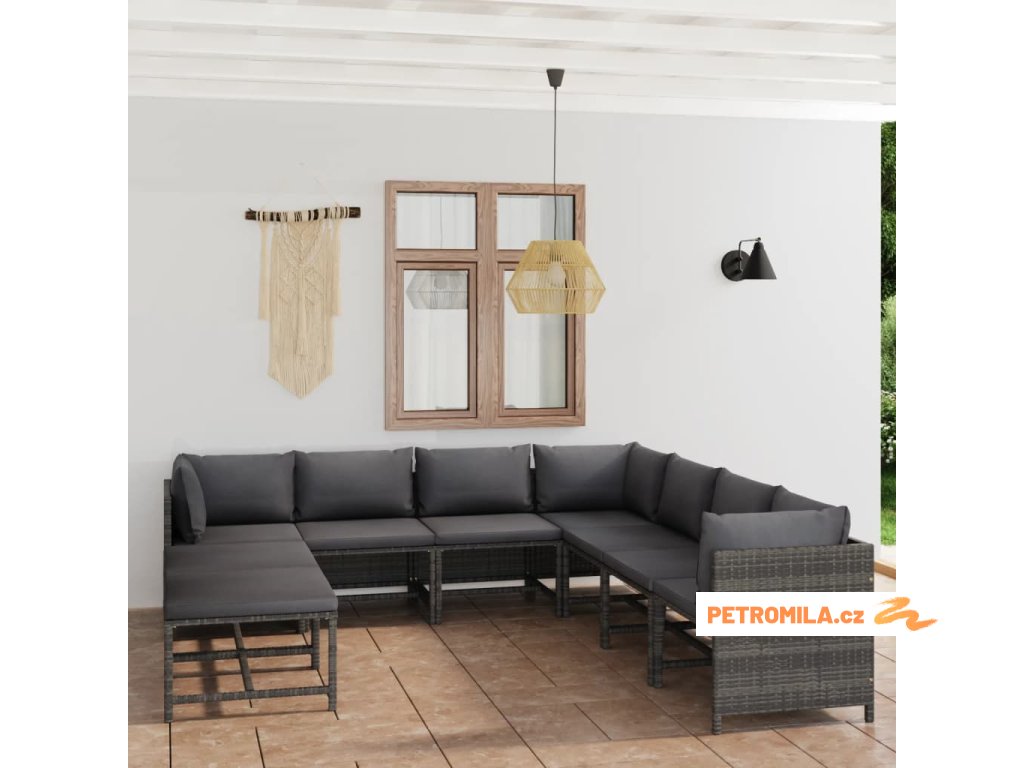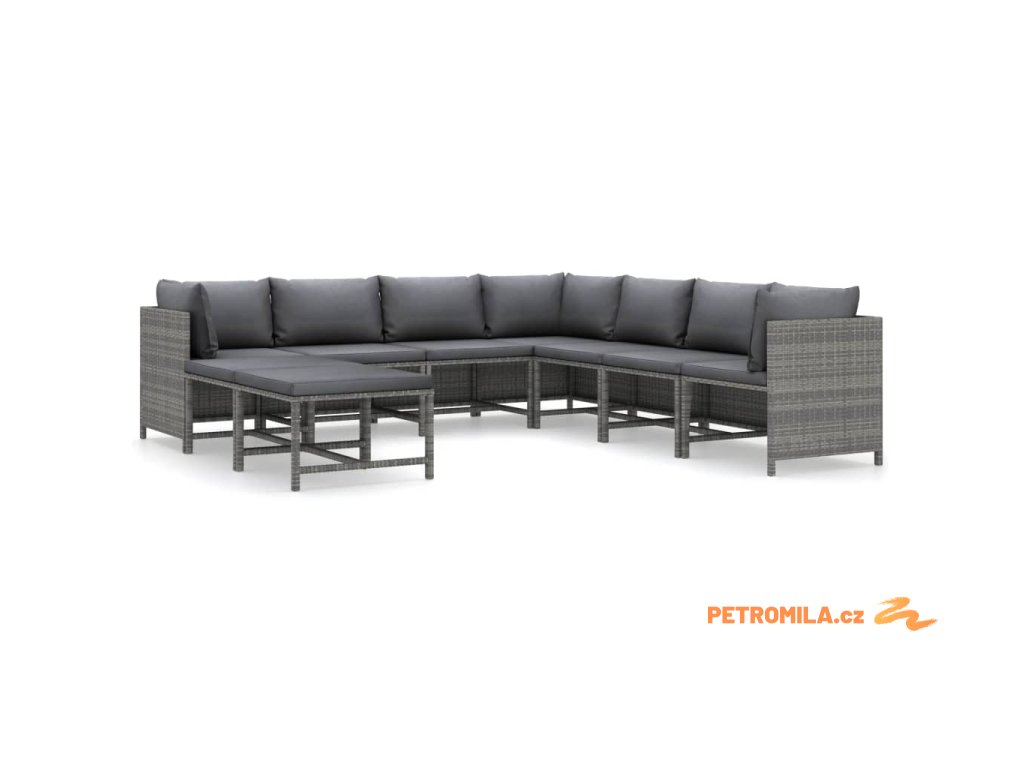 9dílná zahradní sedací souprava s poduškami polyratan šedá
