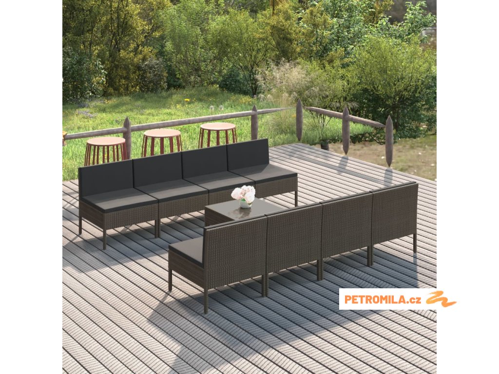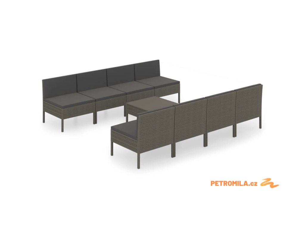 9dílná zahradní sedací souprava s poduškami polyratan šedá