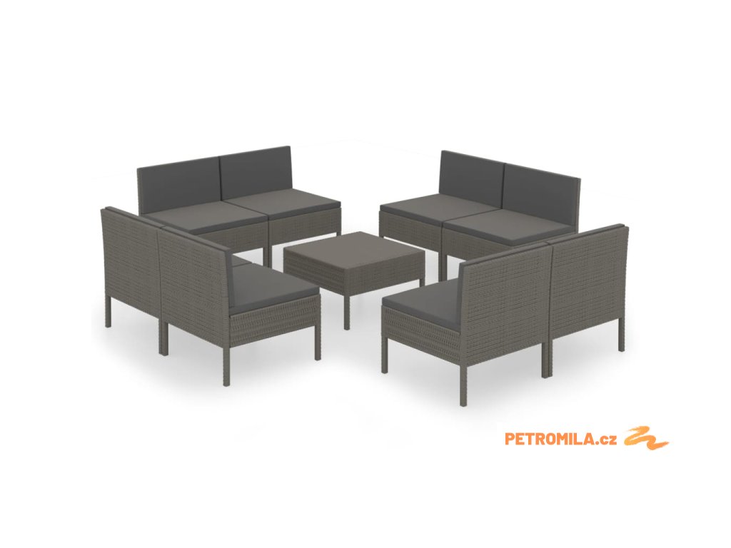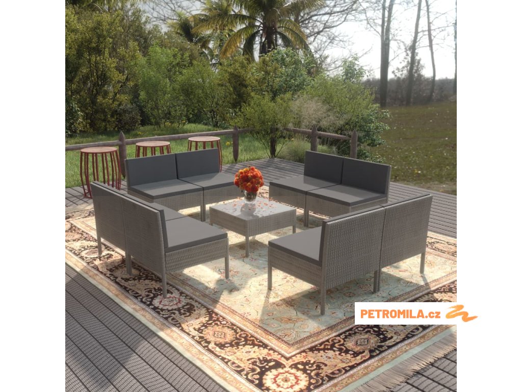 9dílná zahradní sedací souprava s poduškami polyratan šedá