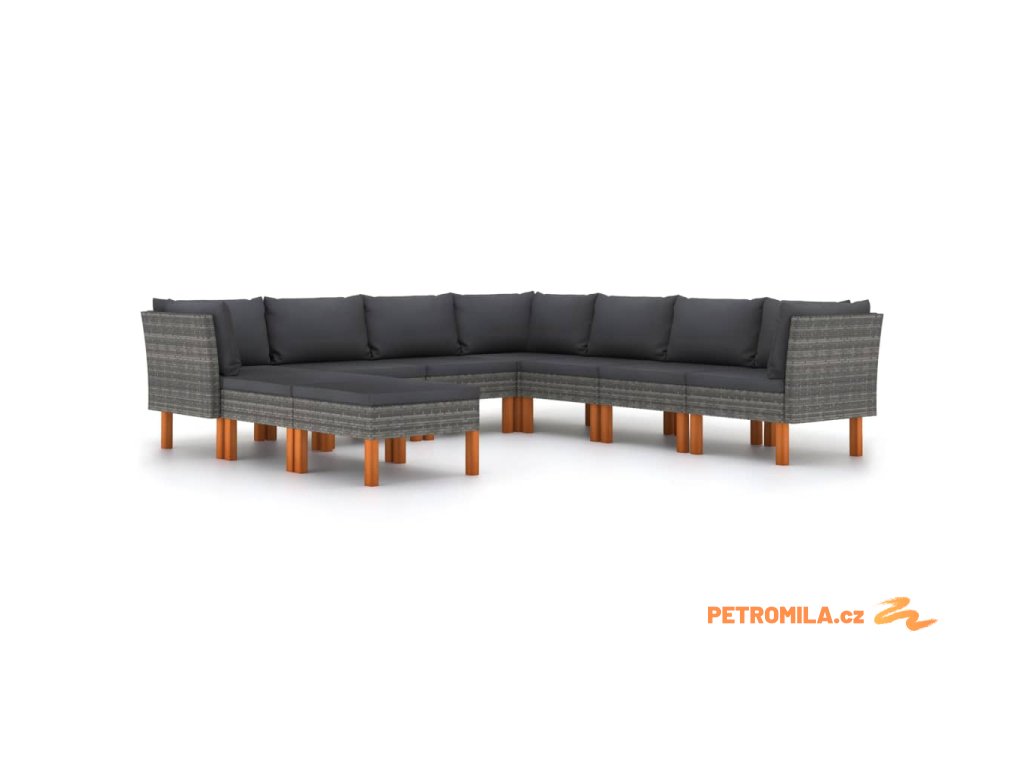 9dílná zahradní sedací souprava s poduškami polyratan šedá