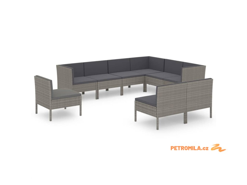 9dílná zahradní sedací souprava s poduškami polyratan šedá