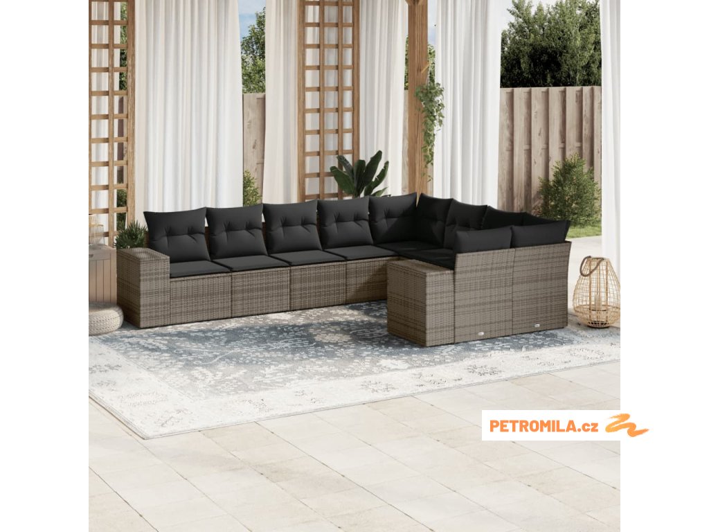 9dílná zahradní sedací souprava s poduškami šedá polyratan