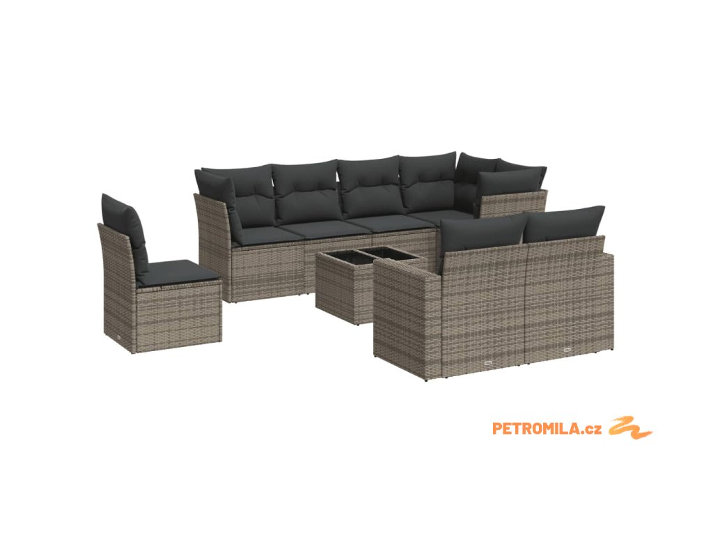 9dílná zahradní sedací souprava s poduškami šedá polyratan