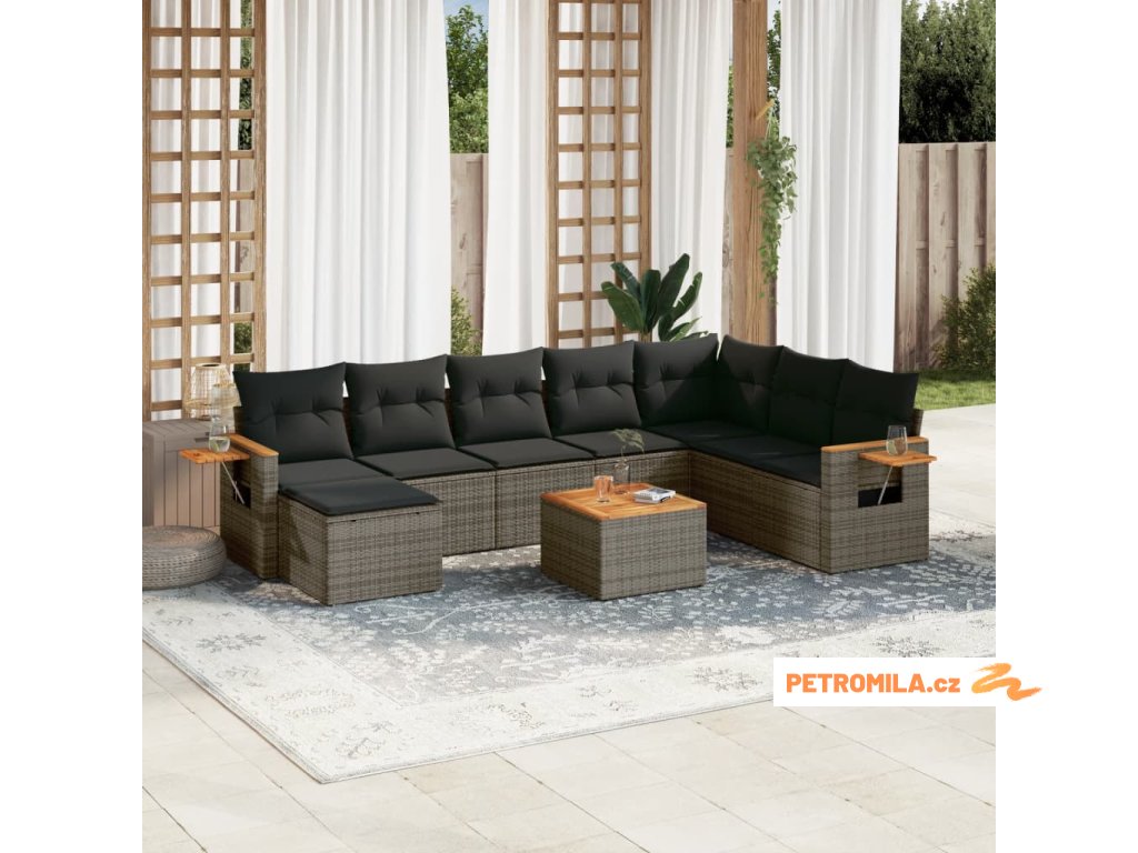 9dílná zahradní sedací souprava s poduškami šedá polyratan