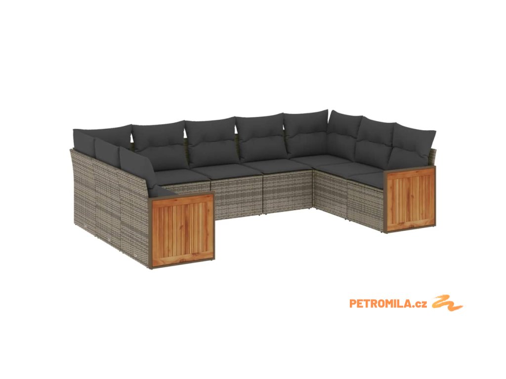 9dílná zahradní sedací souprava s poduškami šedá polyratan