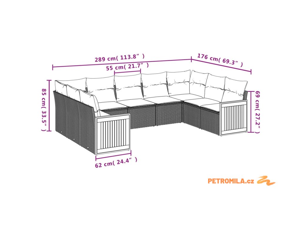Sada zahradních pohovek s polštářem s úložištěm 8 pcs polyratan