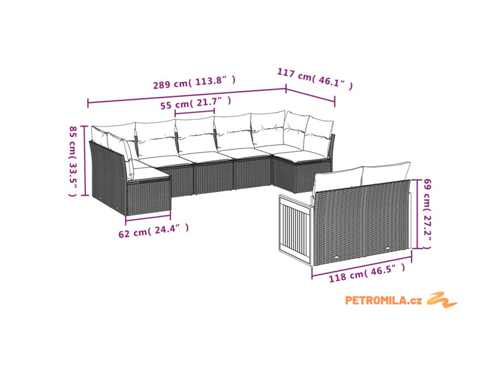 Sada zahradních pohovek s polštářem 8 pcs Šedá Poly ratan