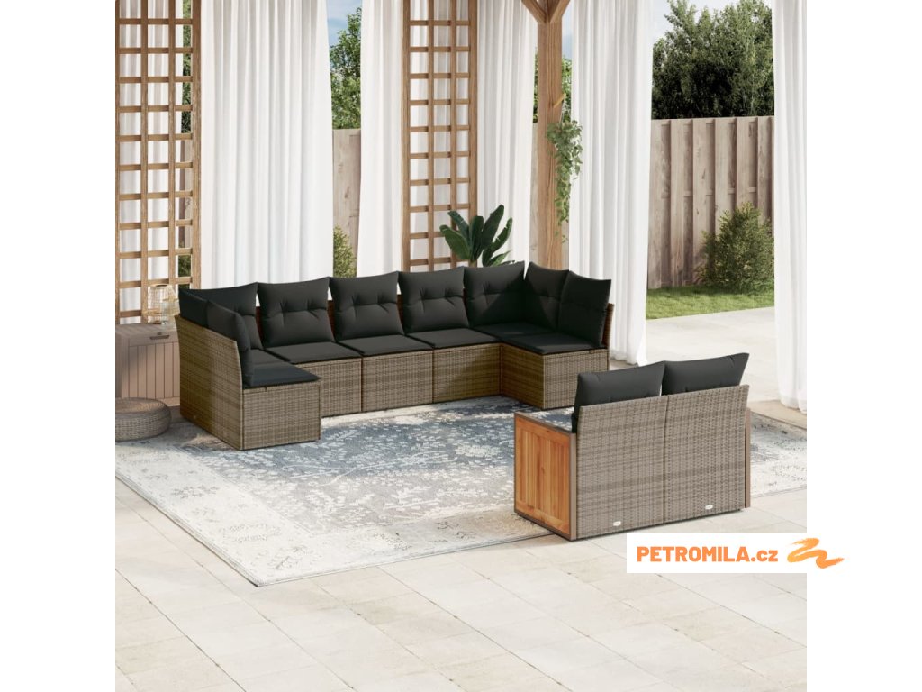 9dílná zahradní sedací souprava s poduškami šedá polyratan