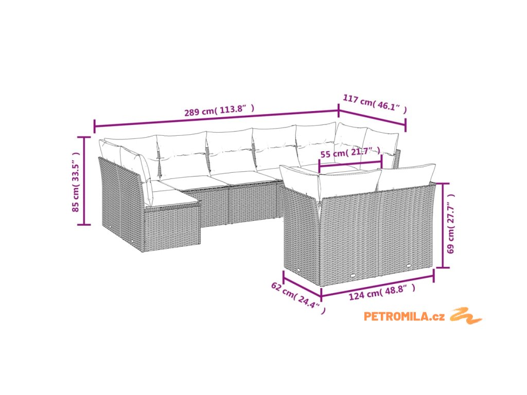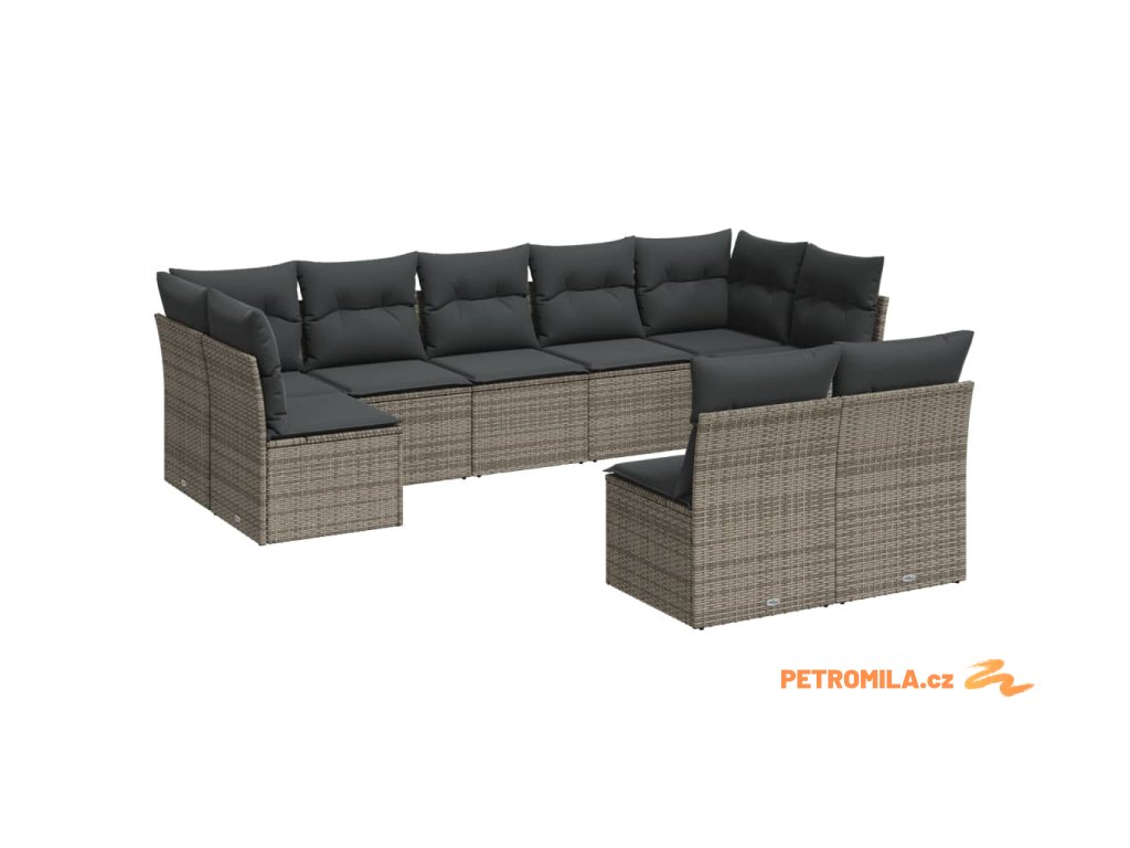 9dílná zahradní sedací souprava s poduškami šedá polyratan