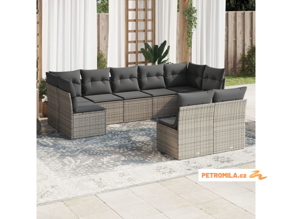 10dílná zahradní sedací souprava podušky světle šedá polyratan