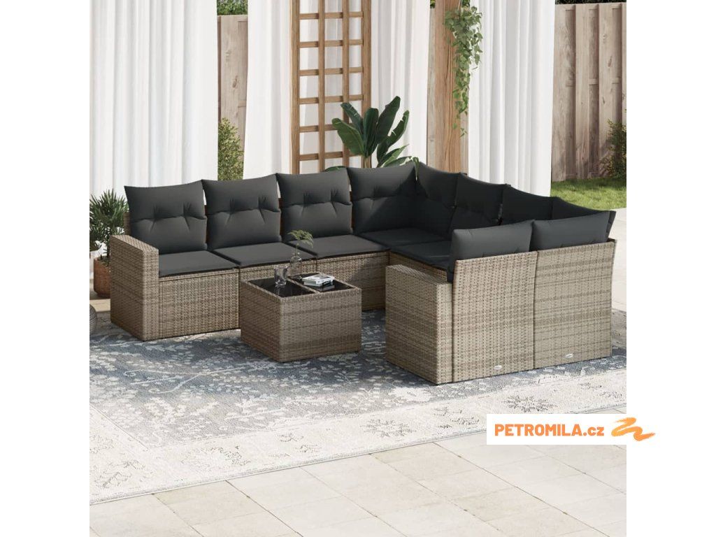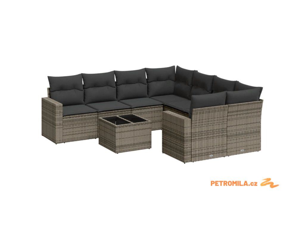 9dílná zahradní sedací souprava s poduškami šedá polyratan