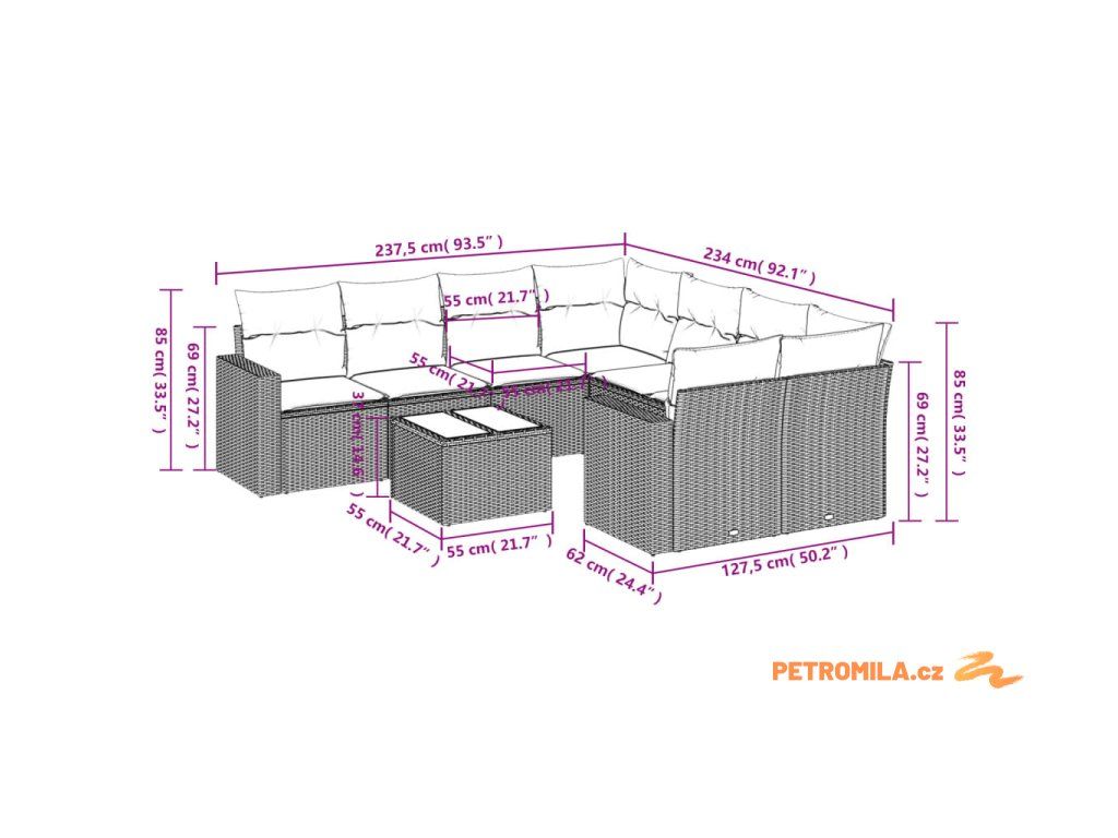Tato zahradní sedací souprava je dokonalým doplňkem vaší zahrady, terasy nebo dvorku a poskytne vám pohodlné a příjemné místo, kde si můžete povídat s rodinou a přáteli nebo jen tak odpočívat a užívat si pobyt venku.
