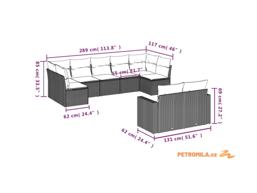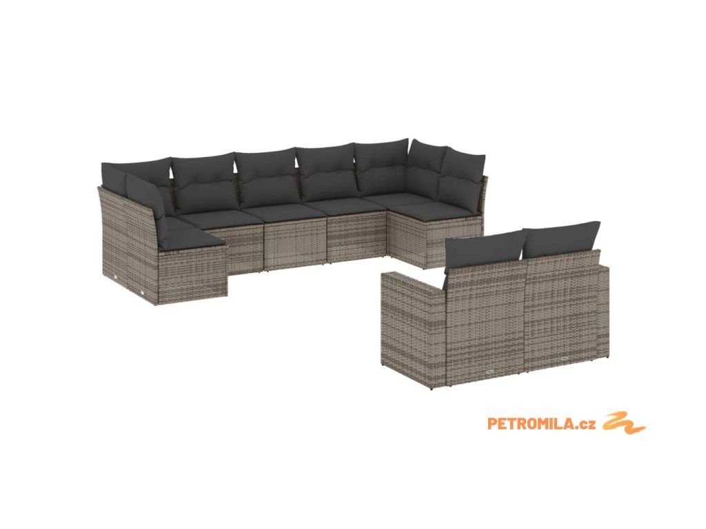 9dílná zahradní sedací souprava s poduškami šedá polyratan