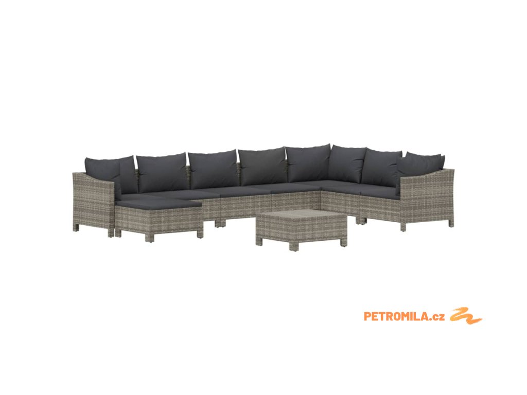 9dílná zahradní sedací souprava s poduškami šedá polyratan