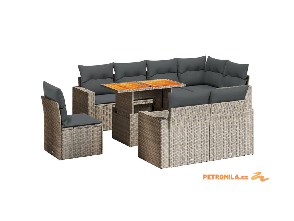 9dílná zahradní sedací souprava s poduškami šedá polyratan